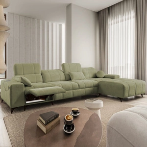 Penejos XII Lux olivová olivová levá rohová pohovka s funkcí spaní Stylová rozkládací pohovka s pohodlnou výsuvnou opěrkou nohou
