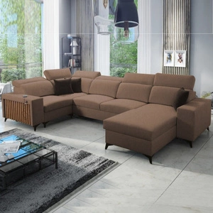 Rohová sedací souprava s funkcí spaní Brandon U Bis vřesová nádoba na lůžkoviny trojrozměrná látka s výraznými pruhy měkké područky