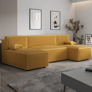 Rohová sedací souprava s funkcí spaní Brandon U medová nádoba na lůžkoviny trojrozměrná látka s výraznými pruhy