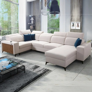 Rohová sedací souprava s funkcí spaní Kelly IV slonovinová kost pravá sametová pohodlná rohová sedací souprava nastavitelné opěrky hlavy postranní čalounění s lištami