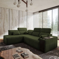 Rohová sedací souprava s funkcí spaní Tesalia VII zelená levá moderní design pohodlný posuvný opěrák zásuvka v boku nábytku