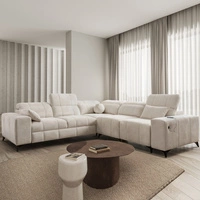 Rohová sedací souprava s funkcí spaní Castel III béžová pravá rohová sedací souprava se dvěma lůžkovinami nastavitelné opěrky hlavy