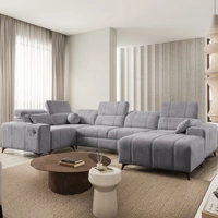 Luigi VI rohová pohovka s funkcí spaní modrá levá strana stylová rohová pohovka s kontejnery na lůžkoviny potažená měkkou látkou