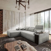 Rohová sedací souprava s funkcí spaní Tesalia IX šedá pravá strana moderní design pohodlné posuvné opěradlo zásuvka v boku nábytku