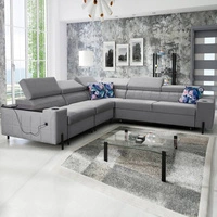 Rohová pohovka s funkcí spaní Cetara III šedá levá ergonomická rohová pohovka s posuvným opěradlem a nastavitelnými opěrkami hlavy