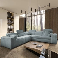 Rohová sedací souprava s funkcí spaní Tesalia IV modrá levá pohodlná rohová sedací souprava do obývacího pokoje s inovativní funkcí posuvného opěradla