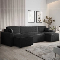 Rohová sedací souprava s funkcí spaní Brandon U Bis černý kontejner na lůžkoviny trojrozměrná látka s výraznými pruhy měkké područky