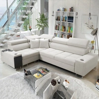 Rohová sedací souprava s funkcí spaní Cetara IV krémová pravý roh stylový design s posuvnými opěradly dvě nádoby na lůžkoviny