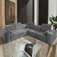 Rohová sedačka s funkcí spaní Cetara III šedá pravá ergonomická rohová sedačka s posuvným opěradlem a nastavitelnými opěrkami hlavy