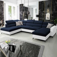 Rohová sedací souprava s funkcí spaní Savona námořnická modrá / bílá pravá elegantní rohová sedací souprava s nastavitelnými opěrkami hlavy dekorativní prošívání