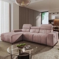 Rohová pohovka s funkcí spaní Castel II růžová pravá pohodlná rohová pohovka s nastavitelnými opěrkami hlavy kontejner na lůžkoviny
