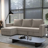 Rohová sedací souprava s funkcí spaní Cetara IV béžová levá strana stylový rohový design s posuvnými opěradly dvě nádoby na lůžkoviny