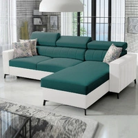 Rohová sedací souprava s funkcí spaní Savona tyrkysová / bílá pravá elegantní rohová sedací souprava s nastavitelnými opěrkami hlavy dekorativní prošívání