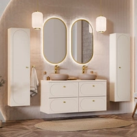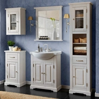 Romantická sada koupelnového nábytku bílá elegantní dřevěné skříňky do koupelny v klasickém stylu vkusné kovové úchytky