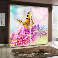 Posuvná skříň Artistino 205 cm s grafickým motivem motýla Korpus skříně z dubu catania z desky o tloušťce 22 mm