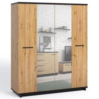 Zrcadlová šatní skříň Simi 180 cm dub artisan / černá minimalistický design klasický tvar ideální šatní skříň do ložnice nebo předsíně