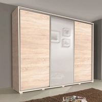 Posuvná šatní skříň se zrcadlem Silwer 255 cm světlý dub sonoma moderní design povrchová úprava ABS a hliníková vodicí lišta dveří
