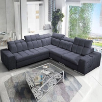 Kelly Sleek IX šedá pravá rohová pohovka s funkcí spaní elegantní rohová pohovka s pohodlnými područkami a nastavitelnými opěrkami hlavy
