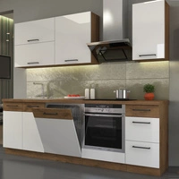 Sada kuchyňského nábytku Linosa 250 cm skříňky vypadají skvěle v moderních i klasických interiérech