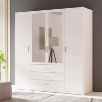 Šatní skříň Adel 200 cm bílá elegantní design prostorná skříň se zrcadlem a zásuvkami ideální do ložnice nebo předsíně zlaté úchyty