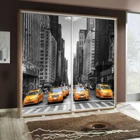 Posuvná skříň Artistino 205 cm s grafikou města Korpus skříně z dubu catania z desek o tloušťce 22 mm
