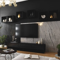 Nábytková sestava Psaru černá / černý lesk Moderní designová nástěnná skříňka do obývacího pokoje nebo obývacího pokoje s vysoce lesklými čely