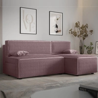 Rohová pohovka s funkcí spaní Fogu Indická růžová pravá rohová pohovka s jednoduchým designem potažená nádobou na lůžkoviny z manšestrové látky