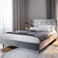 Čalouněná postel Mona 140x200 šedá s úložným boxem v moderním skandinávském stylu s prošívaným podhlavníkem s krystaly