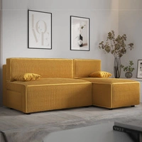 Rohová sedací souprava s funkcí spaní Brandon medový pravý roh trojrozměrná látka s výraznými pruhy nádoba na lůžkoviny