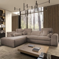 Rohová sedací souprava s funkcí spaní Penejos IV tmavě béžová levá stylová rohová sedací souprava se dvěma lůžkovinami odolná tkanina