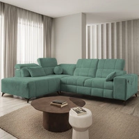 Rohová pohovka s funkcí spaní Penejos IV Lux zelená levostranná stylová rohová pohovka s pohodlným výsuvným podnožníkem