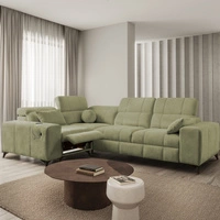 Rohová sedačka s funkcí spaní Penejos II Lux olivová levá pohodlná rohová sedačka do obývacího pokoje s pohodlným výsuvným podnožníkem