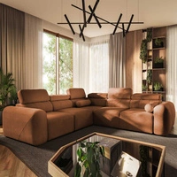 Rohová sedací souprava s funkcí spaní Viano X světle hnědá levé provedení rohová sedací souprava do obývacího pokoje v moderním stylu nastavitelné opěrky hlavy