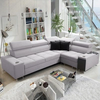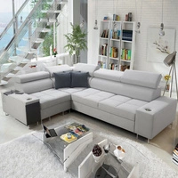 Rohová sedací souprava s funkcí spaní Castel III béžová levá rohová sedací souprava se dvěma kontejnery na lůžkoviny s nastavitelnými opěrkami hlavy