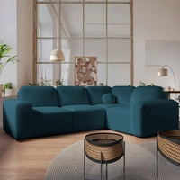 Rohová pohovka s funkcí spaní Tesalia IV Lux modrá levá stylová rohová pohovka s výsuvnou opěrkou nohou a posuvnou funkcí opěradla