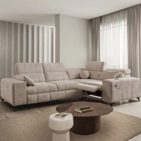 Rohová sedací souprava s funkcí spaní Cetara VII krémová levá vysoce kvalitní rohová sedací souprava do obývacího pokoje s pohodlným posuvným opěradlem