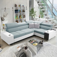 Luigi VI rohová pohovka s funkcí spaní modrá levá strana stylová rohová pohovka s kontejnery na lůžkoviny potažená měkkou látkou