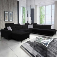 Kelly Sleek X černá levá rohová sedačka s funkcí spaní mimořádně elegantní rohová sedačka do obývacího pokoje s nastavitelnými opěrkami hlavy