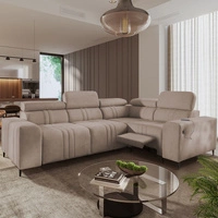 Rohová sedací souprava Buffalo IV s funkcí spaní béžová pravostranná stylová rohová sedací souprava se dvěma lůžkovinami velurová látka