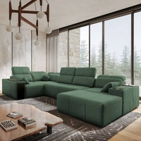 Rohová sedací souprava s funkcí spaní Tesalia V zelená pravá komfortní rohová sedací souprava se zásuvkou a funkcí posuvného opěradla
