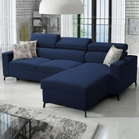 Rohová sedací souprava s funkcí spaní Nausa III tmavě modrá levá sametová stylová pohodlná rohová sedací souprava nastavitelné opěrky hlavy kontejner na lůžkoviny