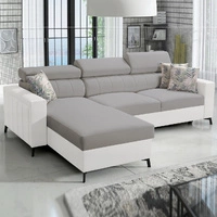 Rohová sedací souprava s funkcí spaní Savona šedý jasan / bílá levá elegantní rohová sedací souprava s nastavitelnými opěrkami hlavy dekorativní prošívání