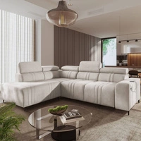 Luigi VI rohová pohovka s funkcí spaní šedý jasan levá stylová rohová pohovka s kontejnery na lůžkoviny potažená měkkou látkou