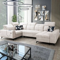 Rohová sedací souprava s funkcí spaní Buffalo IV krémová pravostranná stylová rohová sedací souprava se dvěma lůžkovinami velurová tkanina