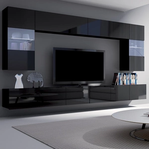 Nábytková sestava Apulia XXII černý lesk extrémně stylová nástěnná skříňka do obývacího pokoje jednoduché jednotky hodící se do každého interiéru