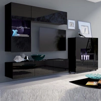 Nábytková sestava Nevea black graphite elegantní nábytek do obývacího pokoje s výraznými barvami bezúchytkové skříňky obohacené designovým lemováním
