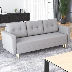 Rozkládací pohovka Telsze šedá elegantní pohovka do obývacího pokoje ve skandinávském tvaru dřevěné vysoké nohy kontejner na lůžkoviny