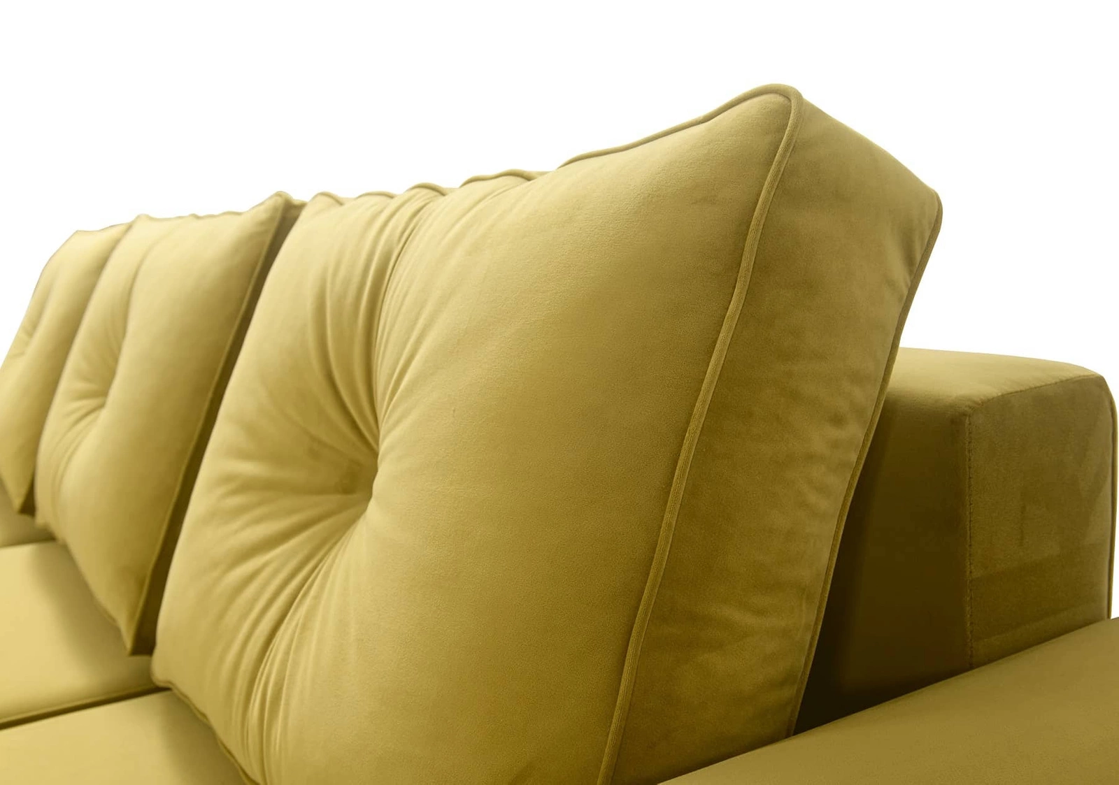 Tkanina má tyto vlastnosti hydrofobní zabraňuje vstřebávání tekutin a vysoká odolnost proti oděru. Tkanina také vykazuje vysokou odolnost proti vyblednutí což je ideální pro velmi slunné interiéry. Extrémně měkké, hladký potahová látka Amor Velvet se vyznačuje příjemným a sametovým povrchem. Rohová jednotka je vyrobena z vysoce kvalitních materiálů, které jsou odolné vůči vnějším vlivům, jako je čalounění nábytku a různé druhy nárazů. Ozdobné polštáře opěradla jediný quiltování je prvek, který upoutá pozornost a doplňuje vysoce elegantní aranžmá.