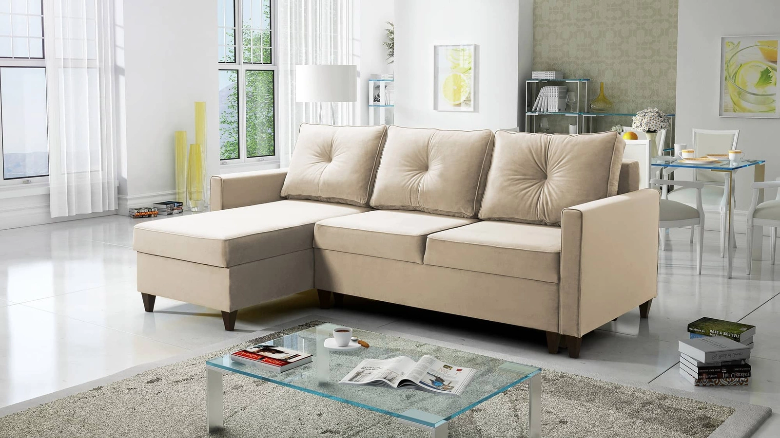 Rohová pohovka Terni v krémové barvě je stylový kousek, který se skvěle hodí do menších prostor.