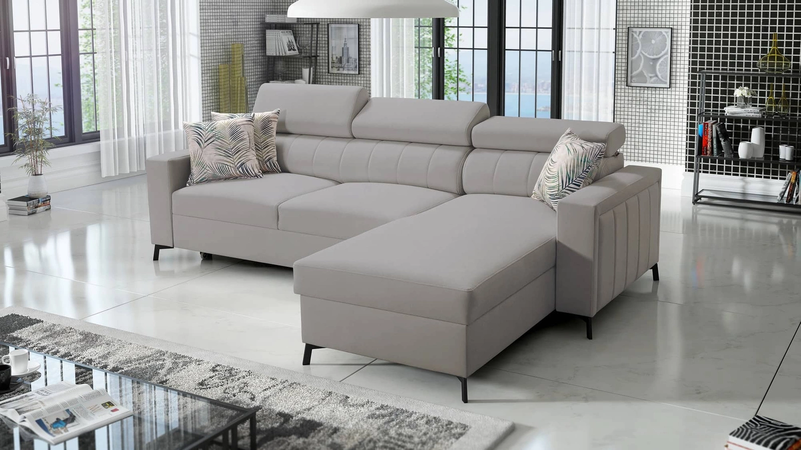 Rohová sedací souprava s funkcí spaní Savona šedý jasan pravá rohová sedací souprava pohodlná a elegantní s nastavitelnými opěrkami hlavy dekorativní prošívání